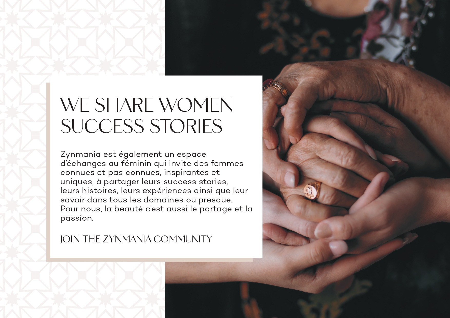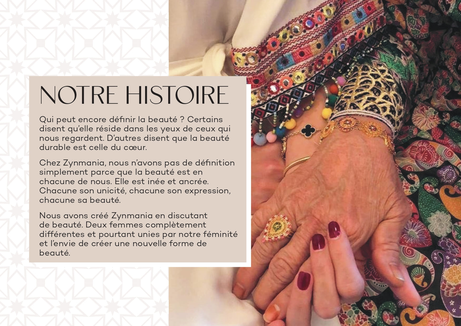 Chez Zynmania, nous voulons contribuer ensemble à nourrir toute forme de beauté pour et autour de la femme. Avant tout, Zynmania est un espace de vie et d’inspiration au féminin.